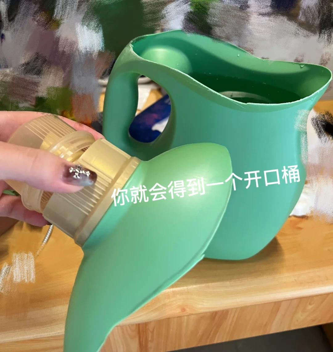 沿着洗衣液桶上半部分剪掉,我们就得到了一个开口桶。