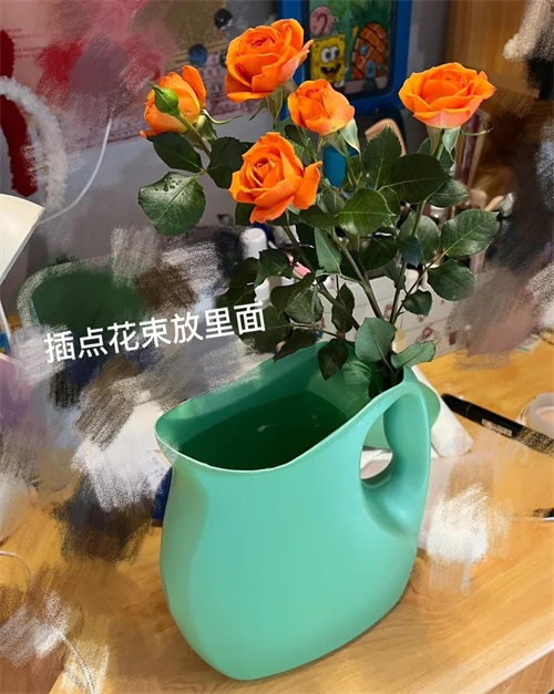 在洗衣液桶里面装点水,然后插上花,一个不花钱的花瓶就做好了。