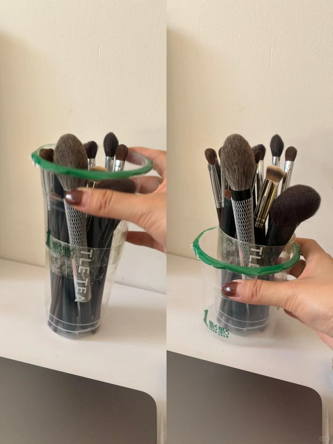 奶茶杯子刷干净之后,可以用来收纳化妆刷或者各种笔。