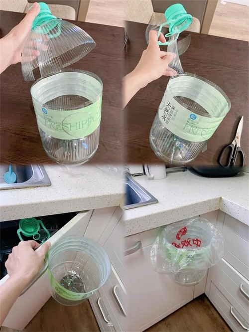 家里若是有这种水桶,别扔掉,把上面剪掉,套个塑料袋,用来当垃圾桶,装垃圾就行了。