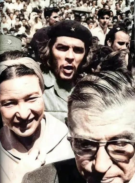 1960年,萨特、波伏娃与切·格瓦拉在古巴哈瓦那。