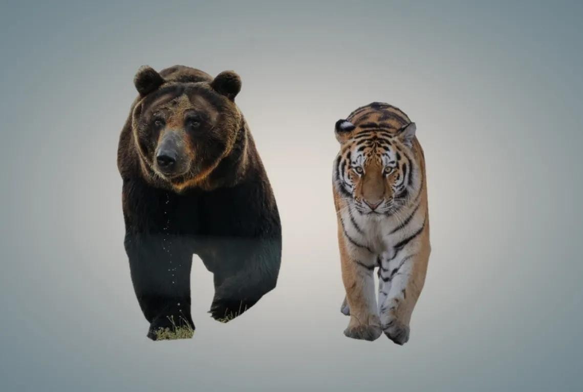 在历史上,曾经有过棕熊与老虎互相猎食的记载。
