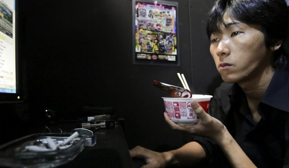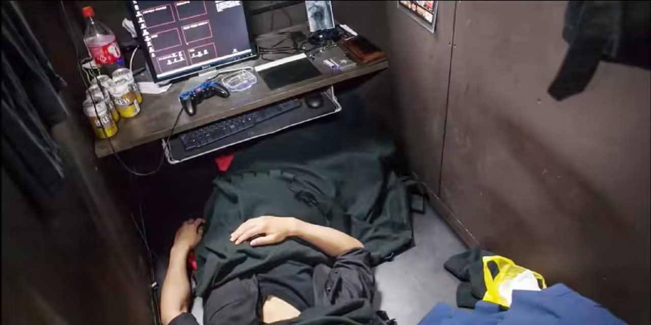 他叫靳爱兵,是河北省张家口人,因为常年坐在网吧的77号座位,被人称呼为“7哥”。靳爱兵看起来是如此的与众不同。很多人都是和朋友一起来网吧打游戏,而靳爱兵却始终是独自一人,陪伴他的只有一个破旧的行李箱,一双破拖鞋,还有一根脏兮兮的手机充电器。然而这些就已经是他全部的东西。让人难以置信的是,77号座位的沙发椅不仅是座椅,还是他的床,平时除了上厕所,靳爱兵几乎不会离开这个宝座。他似乎不注重个人卫生,头发一年只剪一次,洗澡也是一个月只洗一次,就连炎热的夏天也不例外。平时的他,每天睡醒了就打游戏,有时还会看小说,看综艺节目。见到他的人都以为他只是一个离家出走的青年,然而他却是网吧对面吉林大学的高材生,为了考上这所大学,他吃了不少苦。