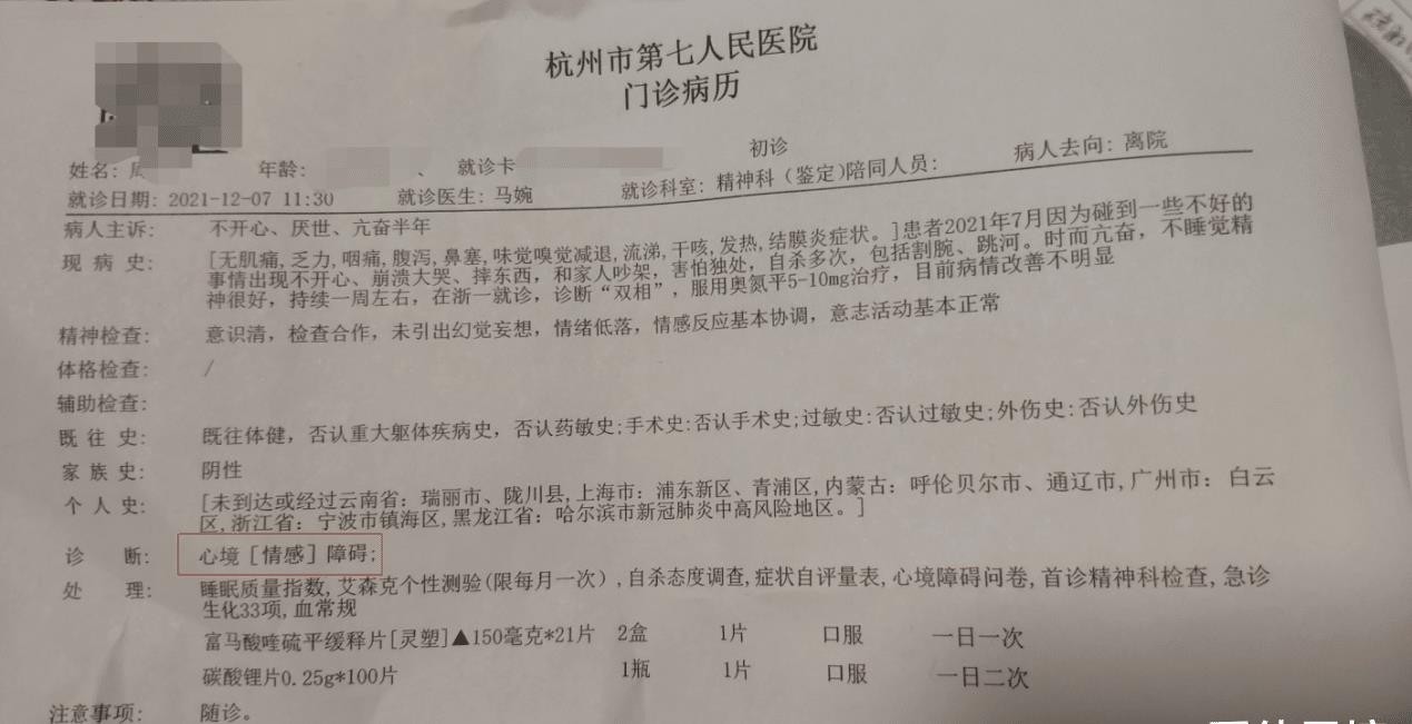 周某在采访中接着表示,整个事件对她的身心造成了极大的伤害。她首先被诊断出患有重度抑郁症,然后被诊断出患有双相情感障碍。她目前已被转移到精神病院接受治疗,并在讲话后返回记者身边。浦展示了他的病历和服用的药物等。