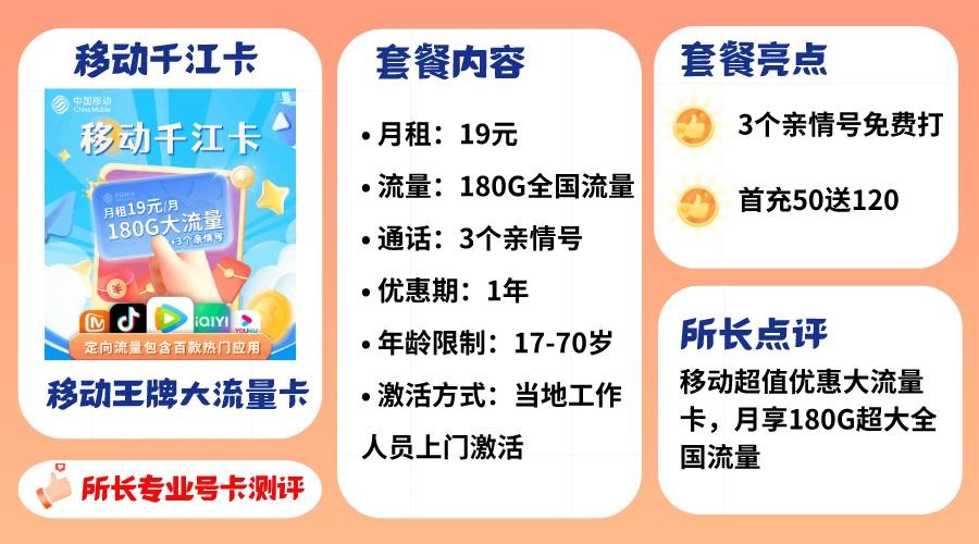 相信卡友们都有如何在2024年入手一张合适的流量卡?作为一名在通信行业里摸爬滚打的资深人员,所长对于流量卡有着丰富的了解,本期推文便给卡友们精挑细选移动大流量卡里面的优质套餐,带领大家办理大流量卡不迷茫~