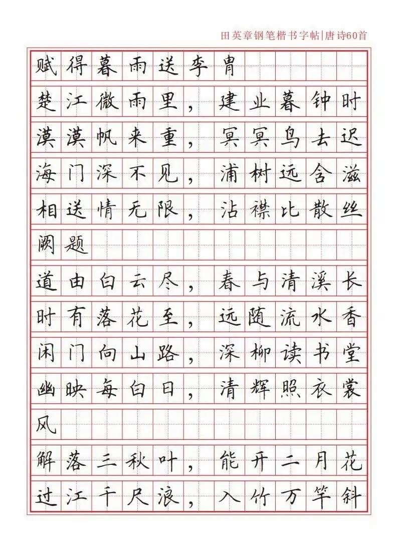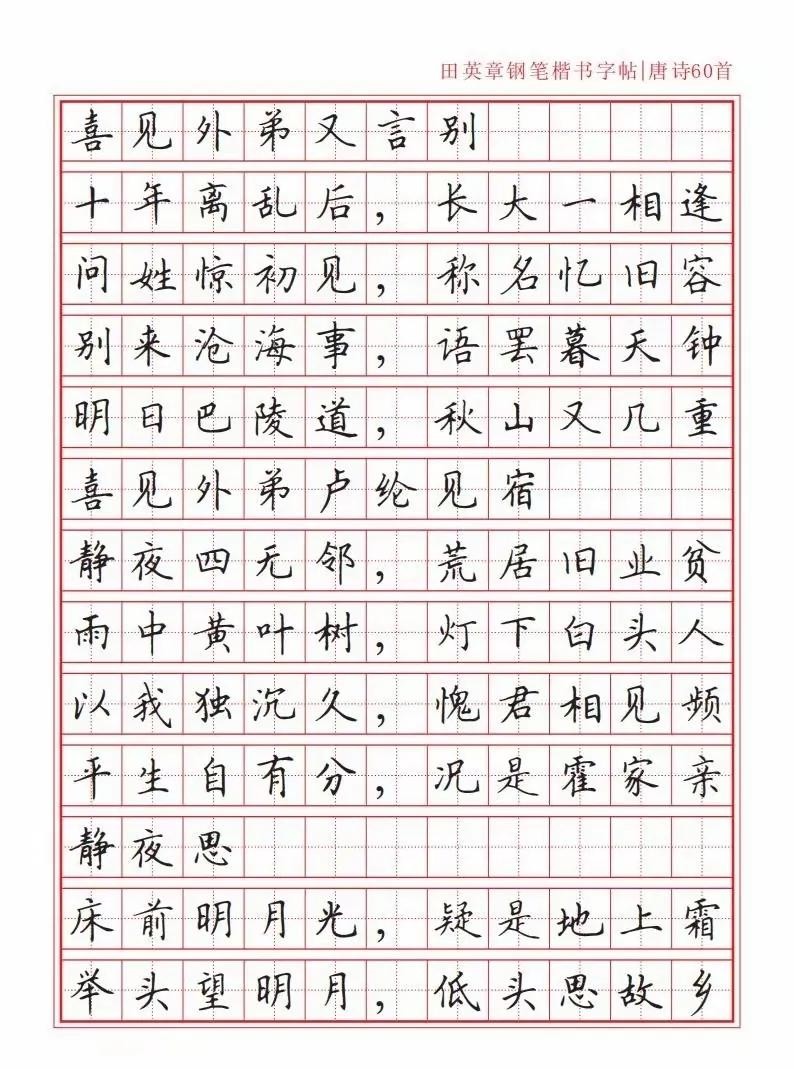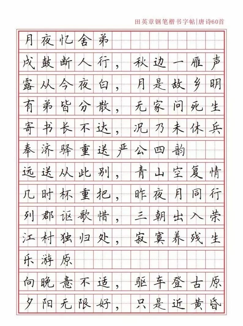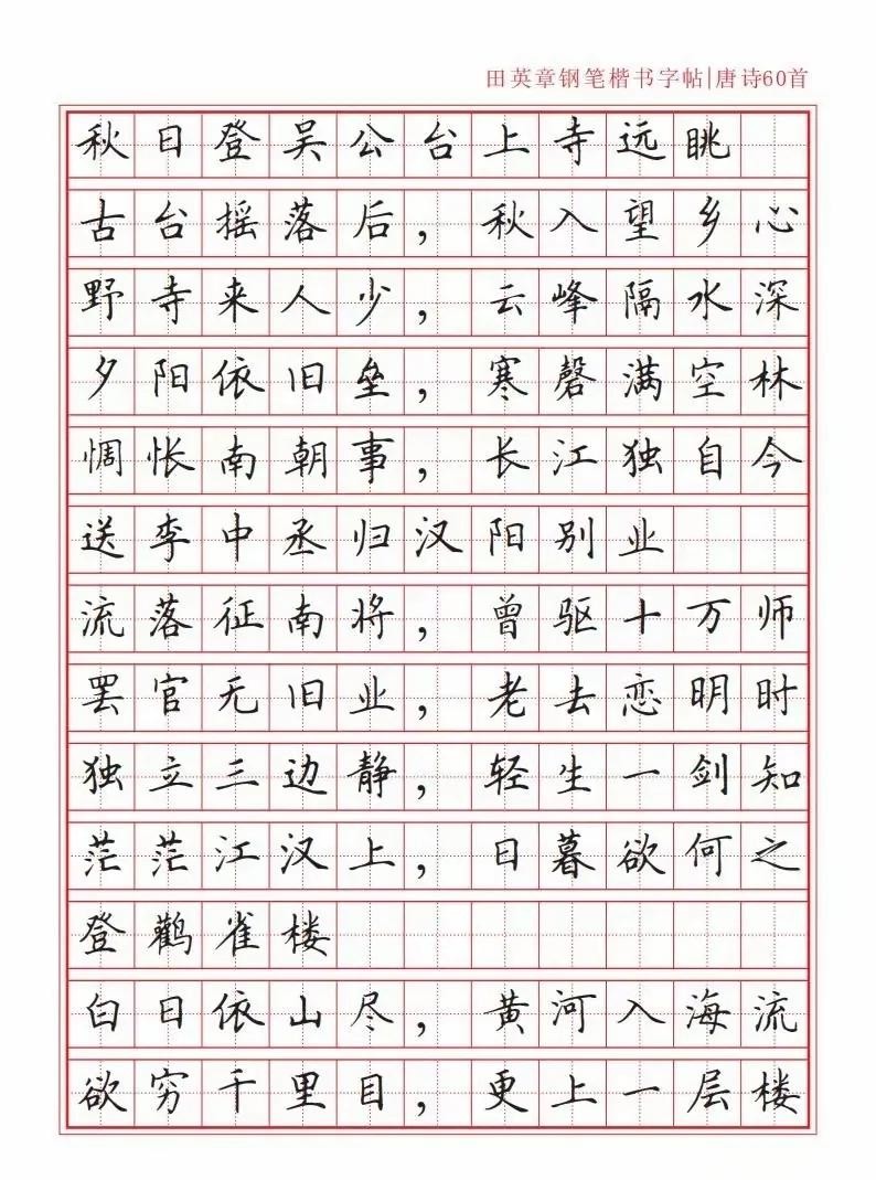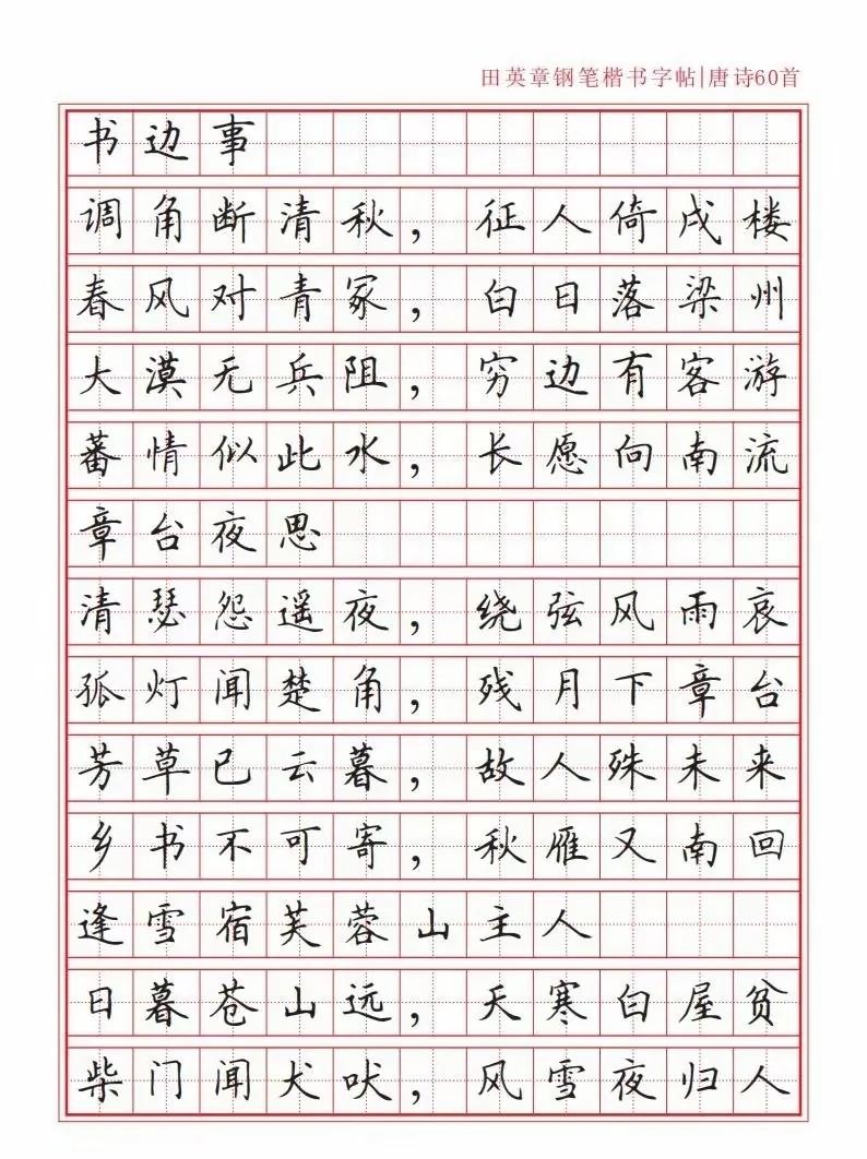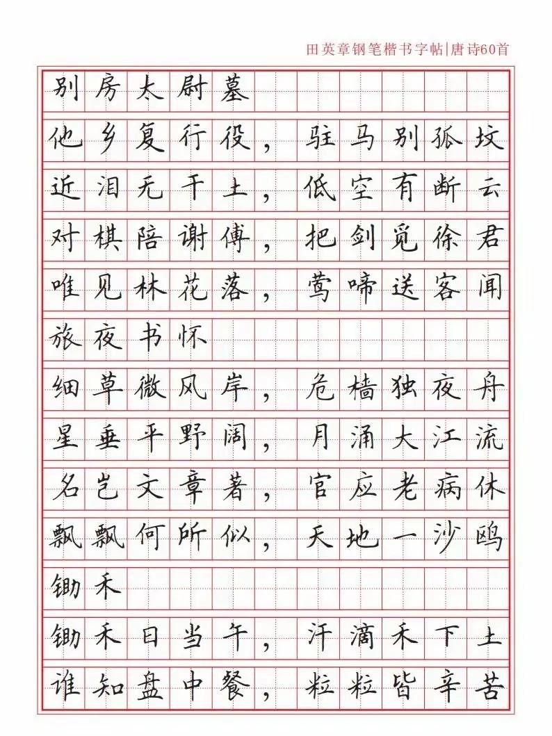 田英章硬笔书法作品《唐诗60首》,这个字真规范