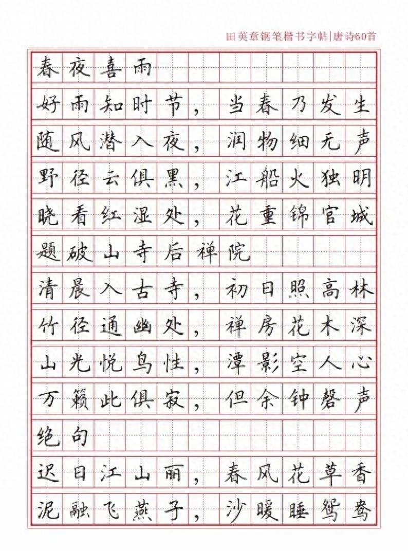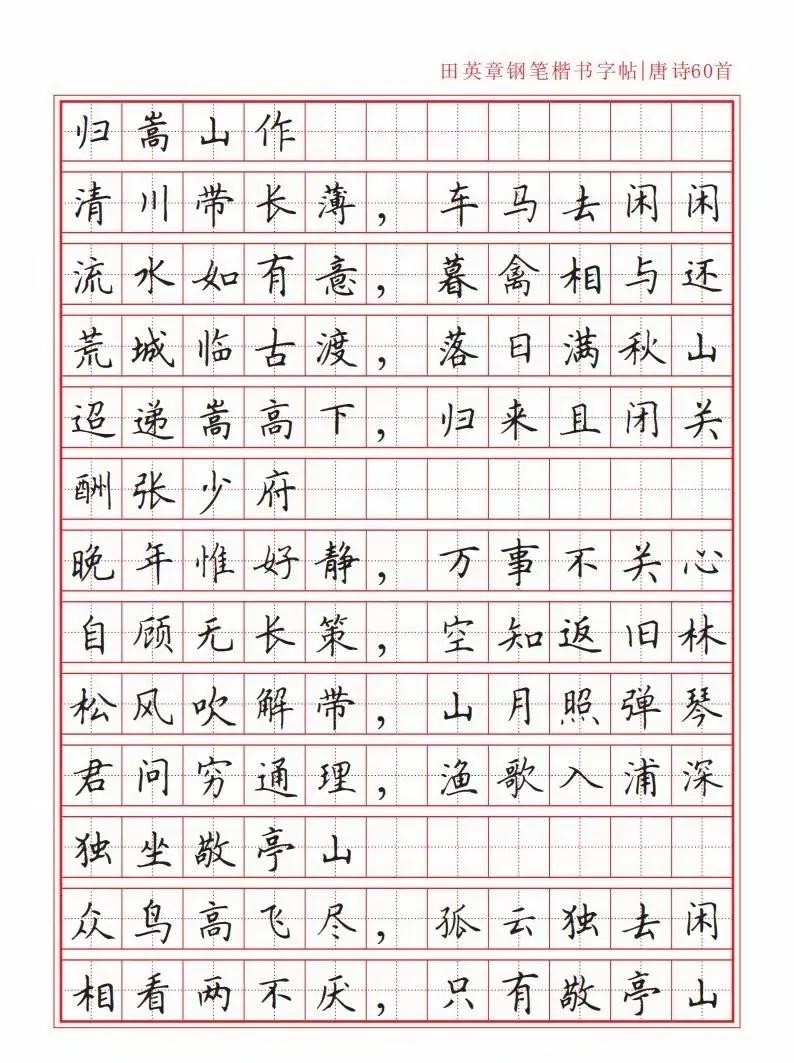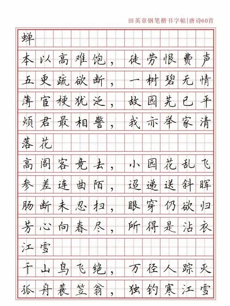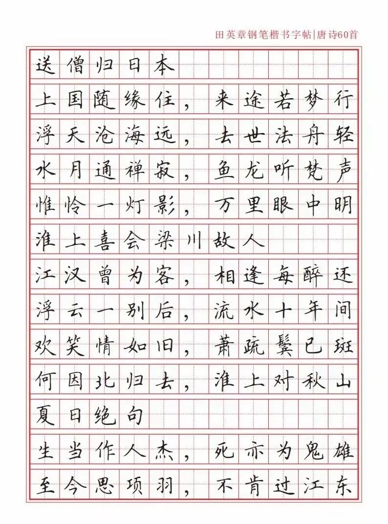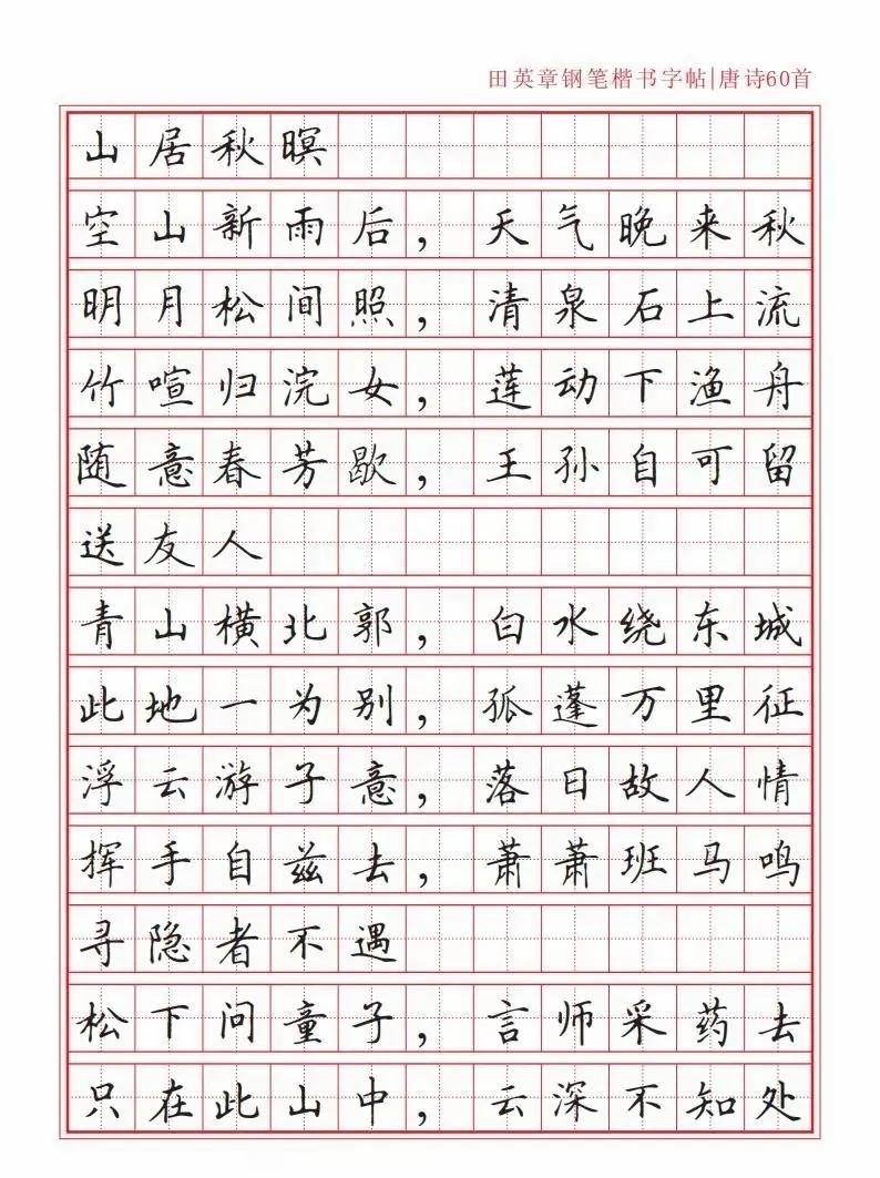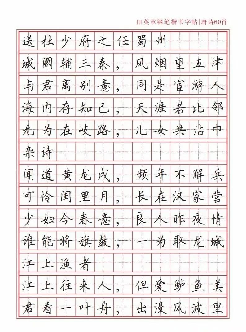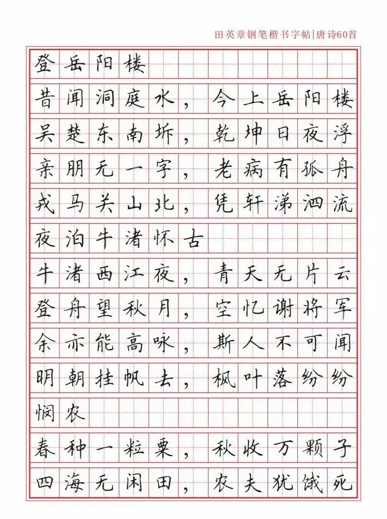 田英章硬笔书法作品《唐诗60首》,这个字真规范