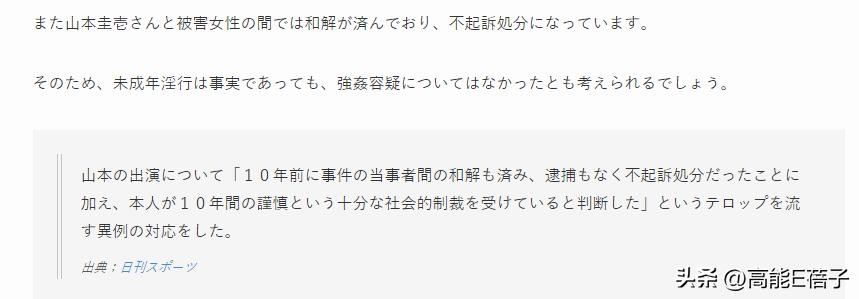 后来,山本圭壱和受害女性达成和解,女子也撤诉,但山本圭壱的事业还是受到了巨大冲击。直到2016年,他才重回娱乐圈。