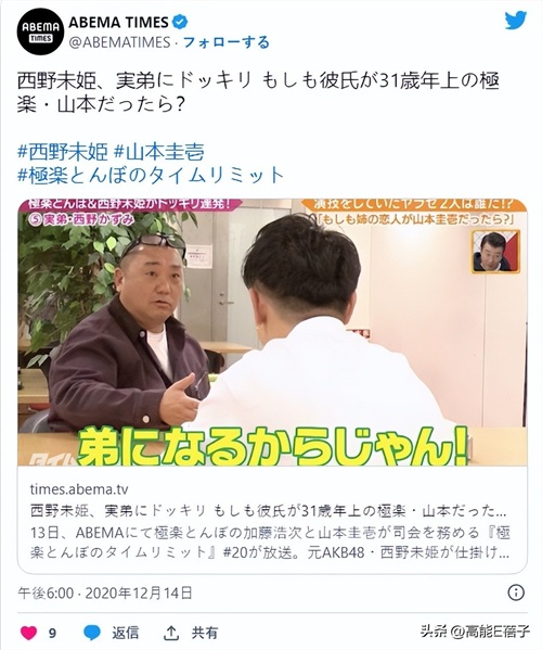公开恋情后,西野未姫和山本圭壱一直高调秀恩爱。但因为两人年龄差太大,外界并没有看好。