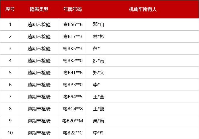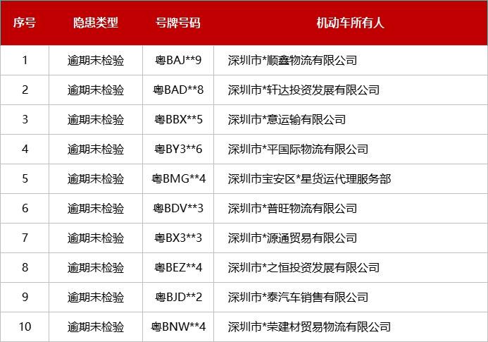 对有隐患的重点车辆的曝光