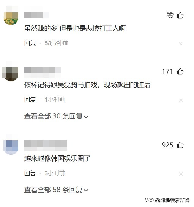 也有网友说到:“怎么越来越有韩国娱乐圈那味了,女艺人不赚钱都被霸凌?虽然赚的多,也是可怜的打工人。”
