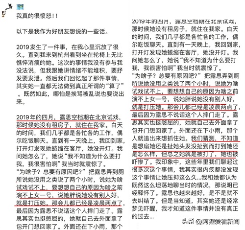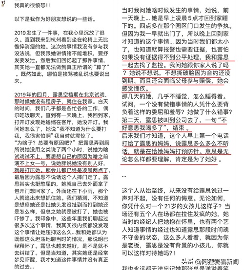 这不,继赵露思深夜被送急诊室发生后,事件越演越烈,露思同意自己的好友发声,其好友表示露思曾被公司老板辱骂殴打!还告诉露思妈妈她很不听话。