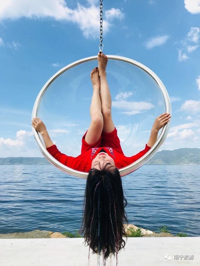 在这里,你可以拍出“假装在洱海”系列唯美图片,网红玻璃球让你实现梦幻少女梦。选一个阳光明媚的周末,坐在透明的玻璃球上,伴着身后的蓝天碧水,秒出大片,是必打卡的景点。