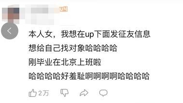 大数据求偶成为年轻人的高效择偶方式,他们用行动告诉你,什么叫“抓住一切机会搞对象“。有网友甚至在爆款视频的弹幕上输入自己的相亲信息,以求获取更高的曝光量;有的网友则在评论里发帖相亲,把评论区活生生改造成“网络相亲角”。