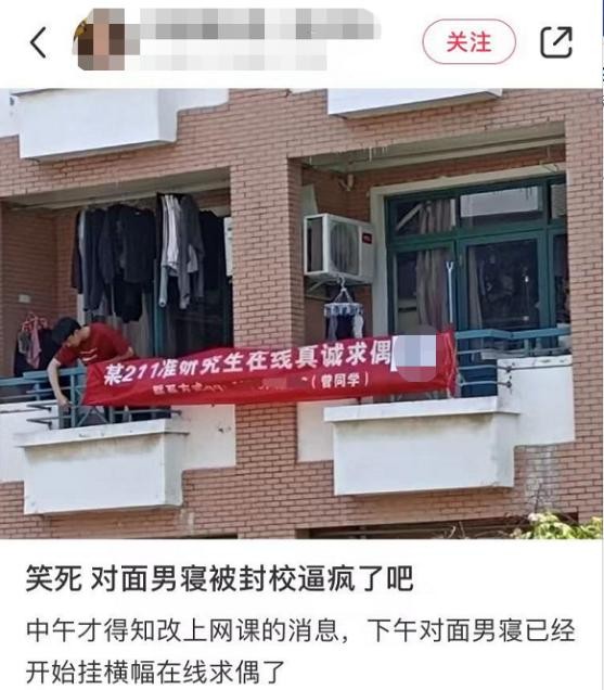 在学弟学妹还在表白墙寻找邂逅时,真正的“社牛”已经把相亲地点搬到了自己的寝室。宁波某大学生在小红书上发帖称,自己对面寝室的男生为找对象在阳台挂上了一个横幅,在上面印上自己的名字和联系方式。