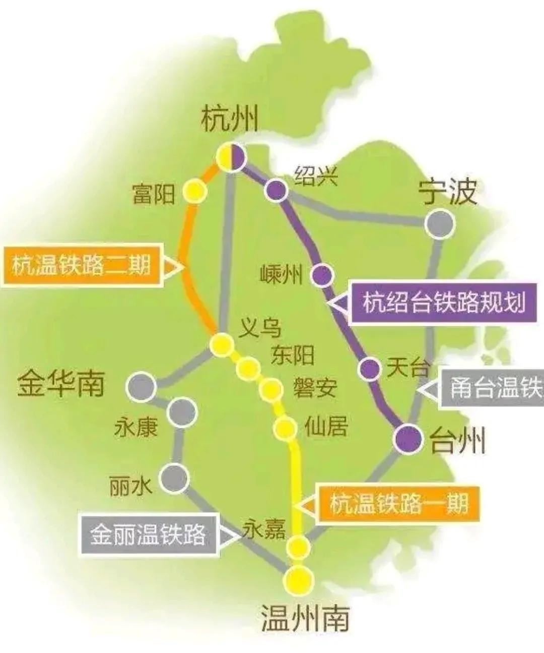 目前,杭州至温州的高铁,主要是走绕行宁波和台州的东线,即先走杭甬高铁到宁波,再走甬台温高铁经台州到温州。