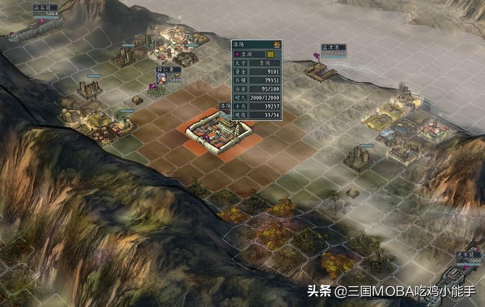 洛阳在游戏中是一个偏中心位置的都市,但这座都市真的非常适合防守和发展。首先这座都市有全游戏最多的24块经济区,再加上附带1关2港,所以洛阳城积累经济资源是非常迅速的,特别利于发展。其次要想进攻这座都市必须要跨过两座雄关,对进攻方来说无疑压力很大,我方防守只要抢先牢牢掌控住这两个天然要塞,那么敌军就别想摸到洛阳城!