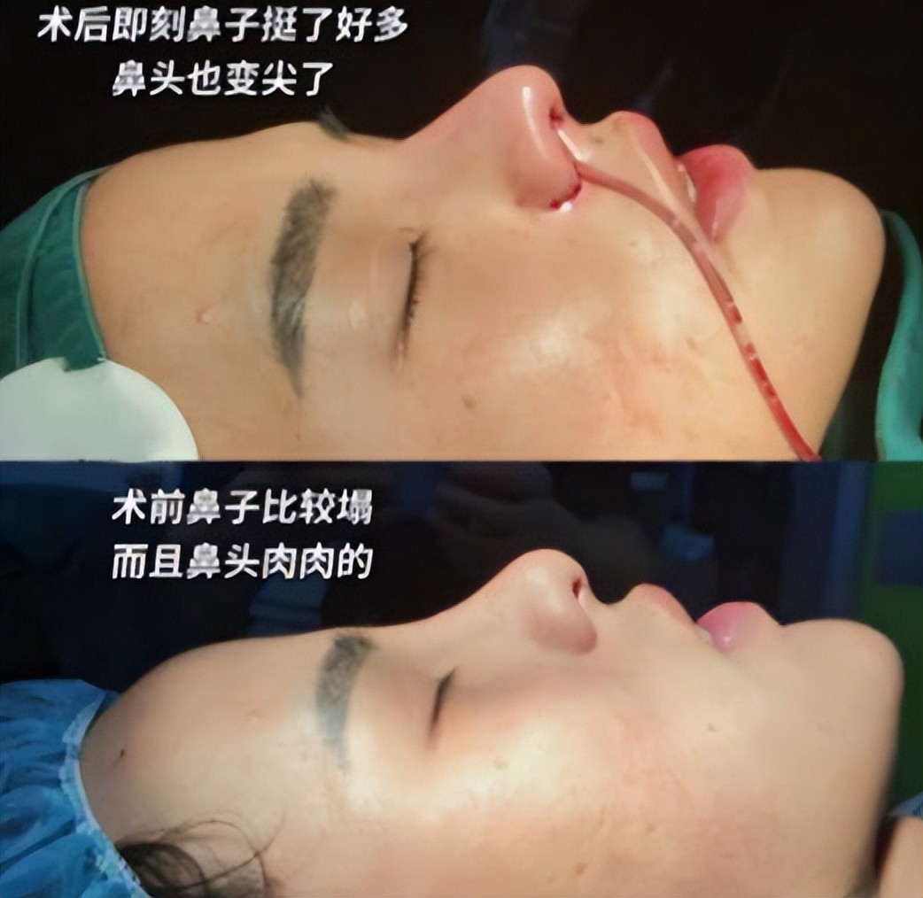 殷世航先晒出了手术前手术后鼻子的对比照片,从照片上看,他以前的鼻翼很宽,鼻孔十分明显,鼻头肉肉的,整个看上去是塌陷的状态,不太好看。而在侧面看仍旧是塌下去的感觉,侧颜也看不出立体来。