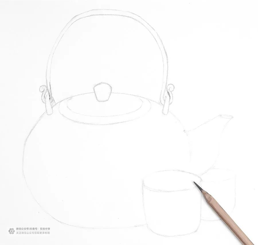 用铅笔勾勒出茶具的外形