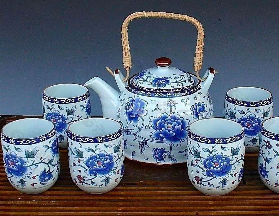 以青花茶具的摄影素材或实物为参考