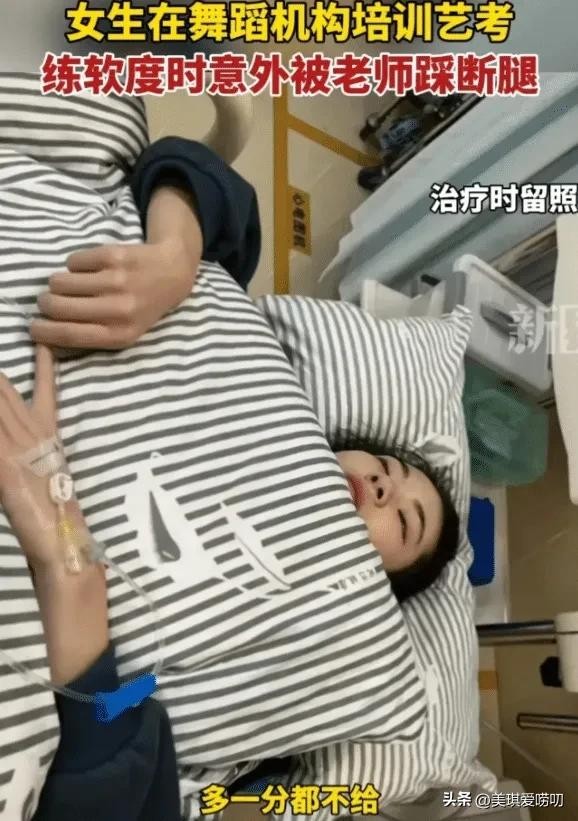 据说这个女生是个舞蹈爱好者,平时勤奋练习,梦想着有朝一日能在舞台上翩翩起舞。可谁想到,在一次日常练习中,老师的一脚下去,她的梦想差点就毁了。听说当时的情况非常严重,女生的腿骨都断了,疼得她撕心裂肺地哭喊。舞蹈机构的工作人员呢?他们不是第一时间送女生去医院,而是忙着推卸责任,甚至还想用五万块钱了事!