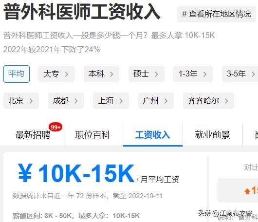 互联网上共统计77份外科医生真实收入,2022年统计工资区间在3000-50000之间,平均工资在10000-15000左右。但是对比2021年下降了24%?